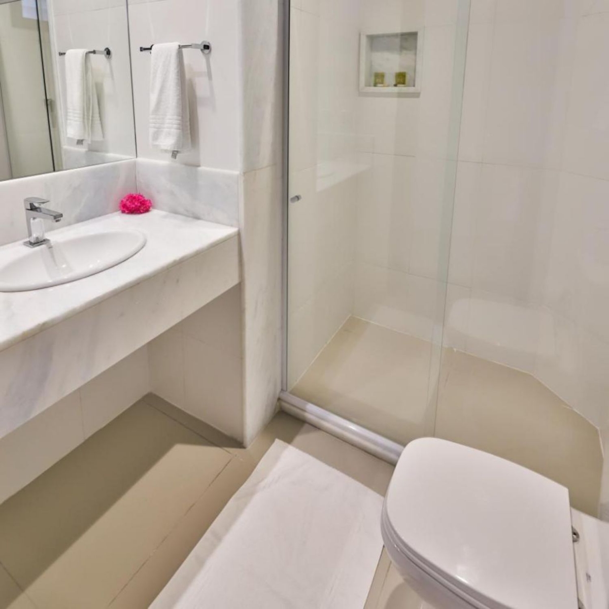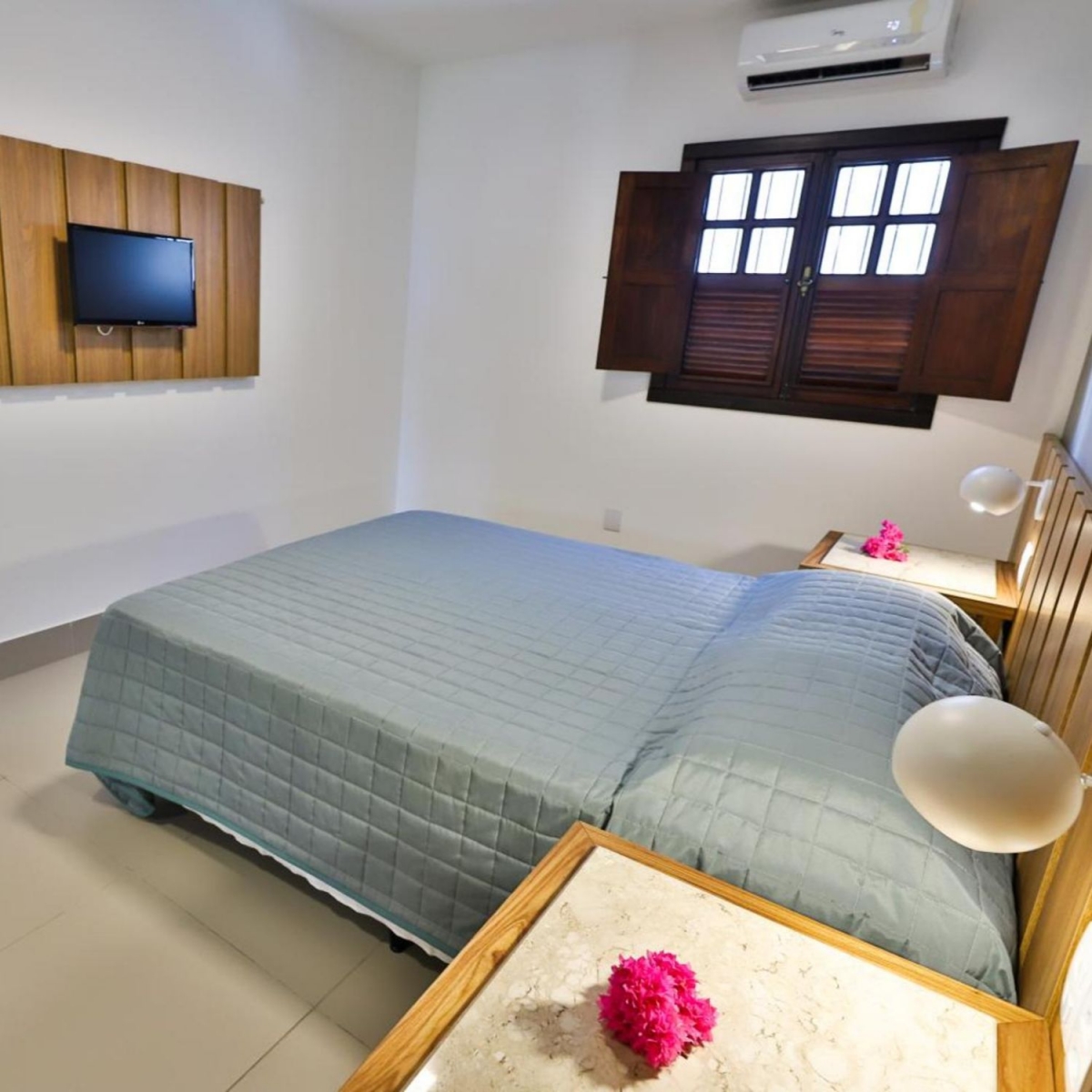 Todos las unidades tienen aire acondicionado modelo split, frigobar, TV LED con control remoto, duchero eléctrico, camas modelo box, toallas y sábanas blancas 100% algodón. Los apartamentos peden ser con una cama matrimonial (1,60x2,00m) o con dos camas de soltero (0,90x2,00).