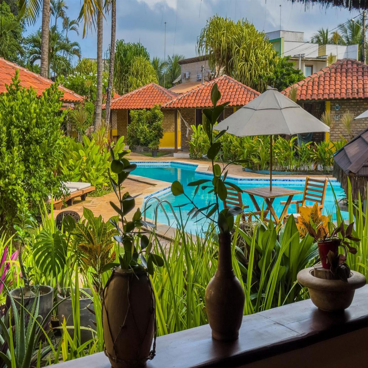 Contamos con 9 confortables y acogedores Bungalows, distribuidos alrededor de la piscina y en medio de un área privilegiada de jardín tropical premiado por revistas de paisajismo.